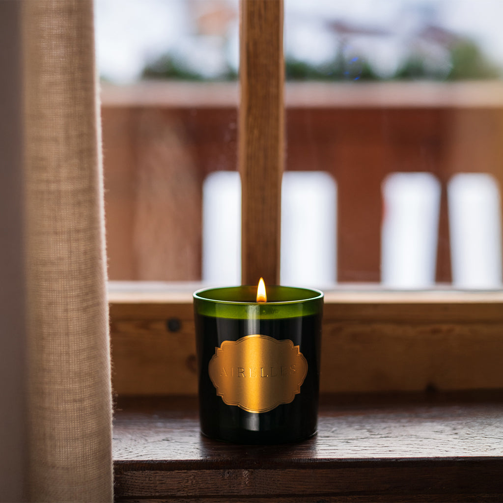 Réchauffez votre intérieur du parfum de l'hiver selon Airelles, où que vous soyez. Avec ses notes fumées chaleureuses où se mêlent bois de cachemire, cèdre, clou de girofle et musc, cette bougie allume une flamme de joie réconfortante. Sa fragrance profonde évoque la douce quiétude d'un feu de cheminée. Dans son écrin raffiné rouge et or, c'est le cadeau parfait pour soi ou pour ceux que l'on aime.