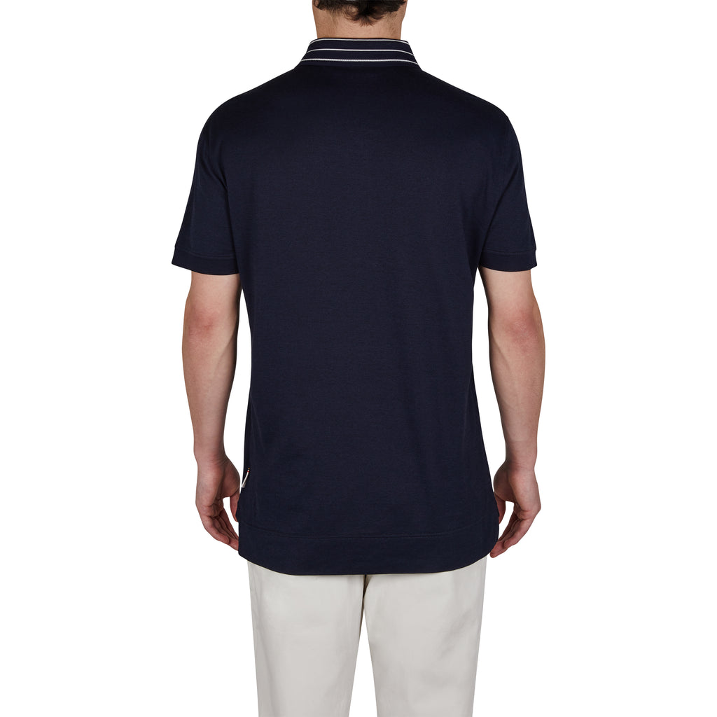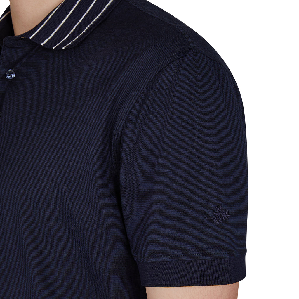 The Dominic Airelles polo combines classic tailoring with an iconic Orlebar Brown touch - contrasting seasonal stripe piping along the collar and inner placket. This navy blue short-sleeved polo plays the simplicity card with a three-button placket, classic cut and breathable jersey fabric for comfort that lasts season after season.